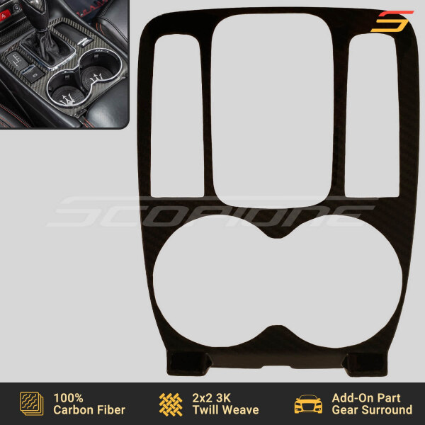 Looking for the perfect visual upgrade for your Maserati? Genuine Scopione Carbon Fiber parts will add a distinct style to your super car that can only be achieved with authentic 100% Carbon Fiber. Authentic carbon fiber add-on gear shift surround dash trim trim cover is designed for reduction in weight and an increase of performance. The UV and weather protective glossy coating and precise custom fitting of each Scopione Carbon part ensures the driver that the vehicle is equipped with only the most reliable parts available on the market.