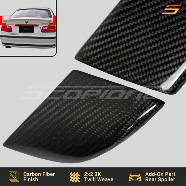 Looking for the perfect visual upgrade for your BMW 3 Series E46 Sedan? Genuine Scopione Carbon Fiber parts will add a distinct style to your super car that can only be achieved with authentic Carbon Fiber. Authentic carbon fiber rear trunk spoiler is designed for reduction in weight and an increase of performance. The UV and weather protective glossy coating and precise custom fitting of each Scopione Carbon part ensures the driver that the vehicle is equipped with only the most reliable parts available on the market.