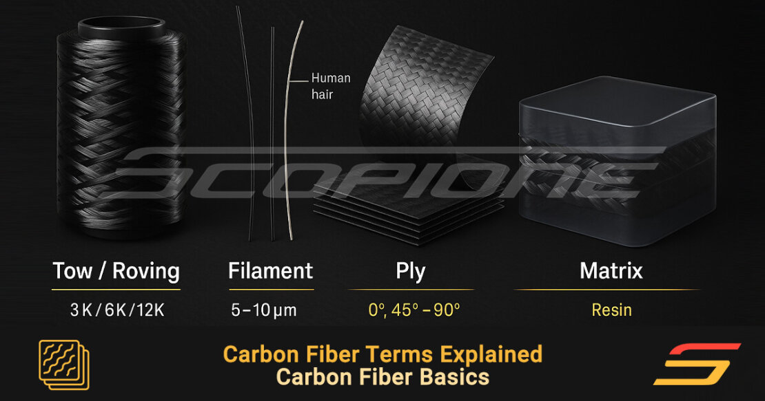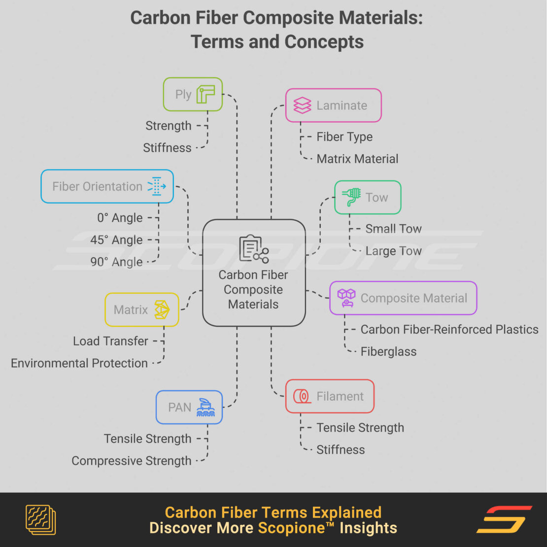 Welcome to Scopione’s Carbon Fiber Glossary — your definitive reference for understanding the materials, processes, and jargon behind high-performance carbon components. Whether you’re new to composites or a seasoned builder, this page empowers you to: