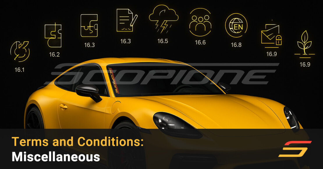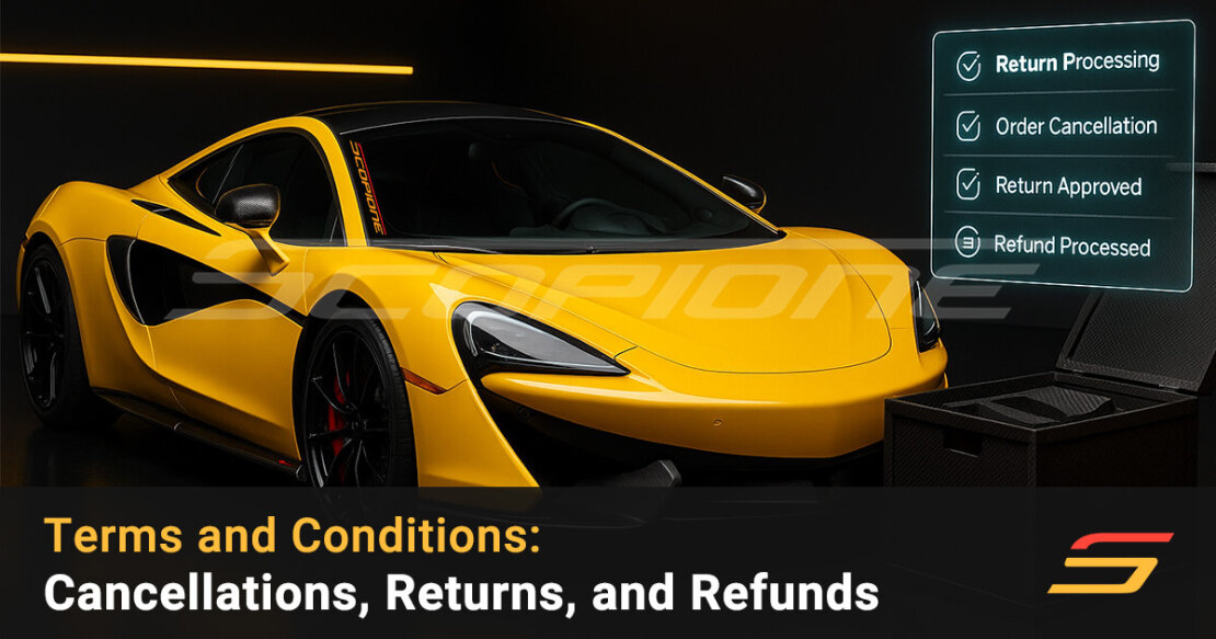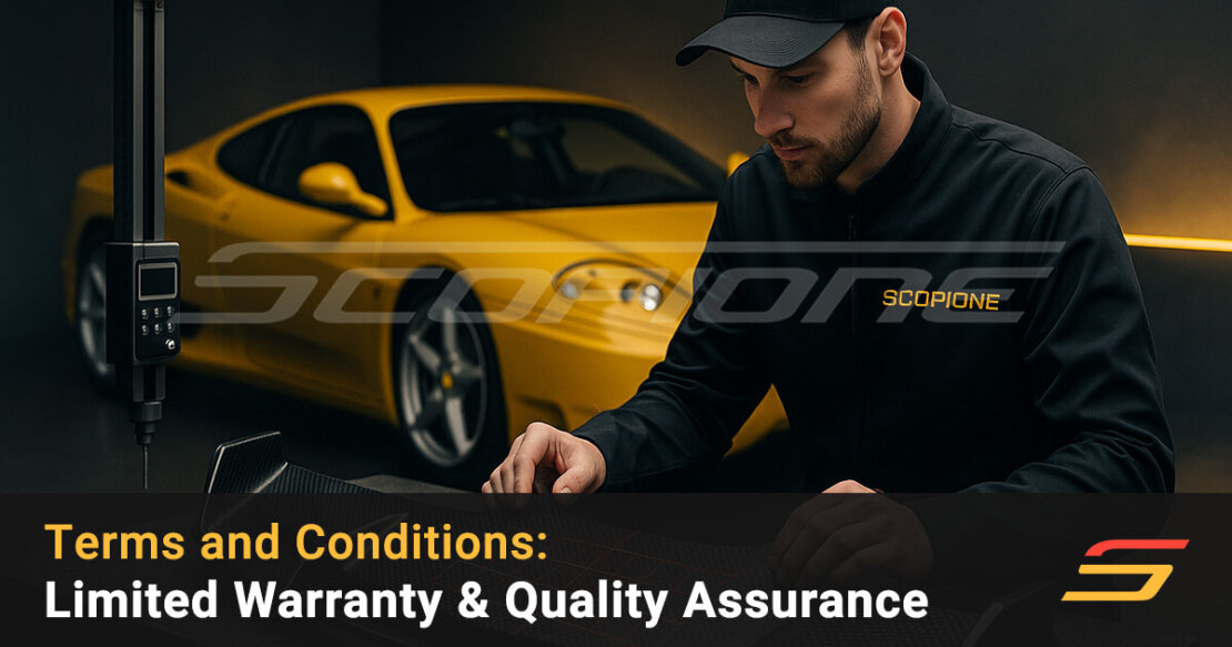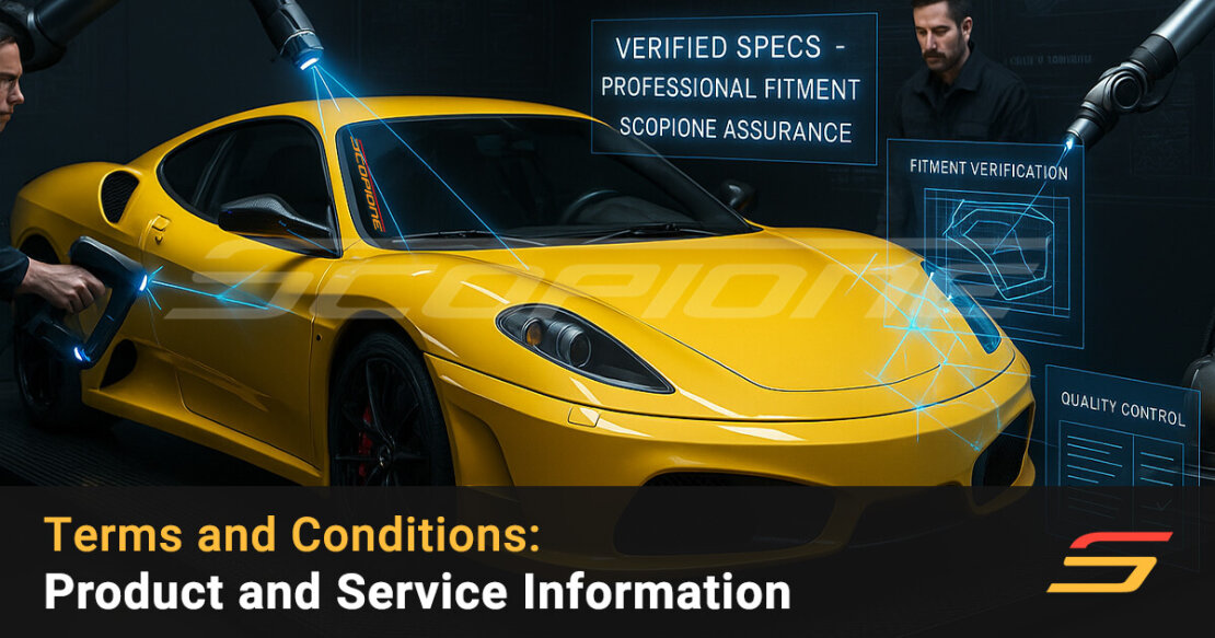 At Scopione, we’re dedicated to delivering premium carbon fiber parts for automotive enthusiasts and professionals. These Terms & Conditions govern your use of our website, your purchases, and your relationship with us. Please read carefully — by accessing or using Scopione.com, you agree to abide by these terms. If you do not agree, kindly discontinue use of the site.