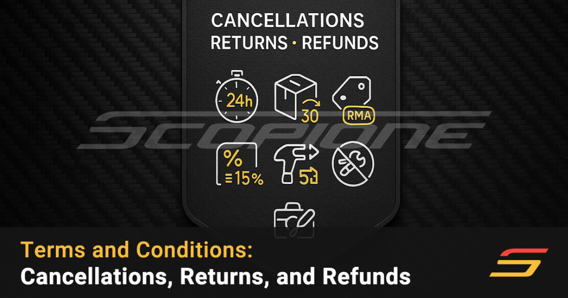 Scopione’s online community represents the same precision, craftsmanship, and innovation that define every carbon-fiber part we create. These terms ensure a positive, transparent, and respectful environment for all enthusiasts who engage with Scopione across our digital platforms.